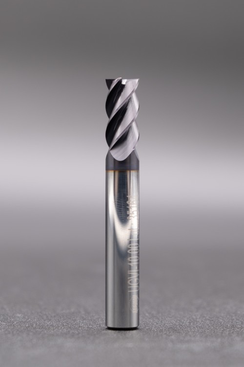 Fraise en carbure pour usinage grande vitesse (UGV). Hélice 43°, avec chanfreins, revêtue pour usinage inox.